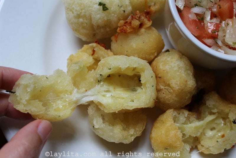 - For best results you can refrigerate the cassava balls for 30 minutes to an hour before frying - this will help keep the cheese filling from leaking out while frying.