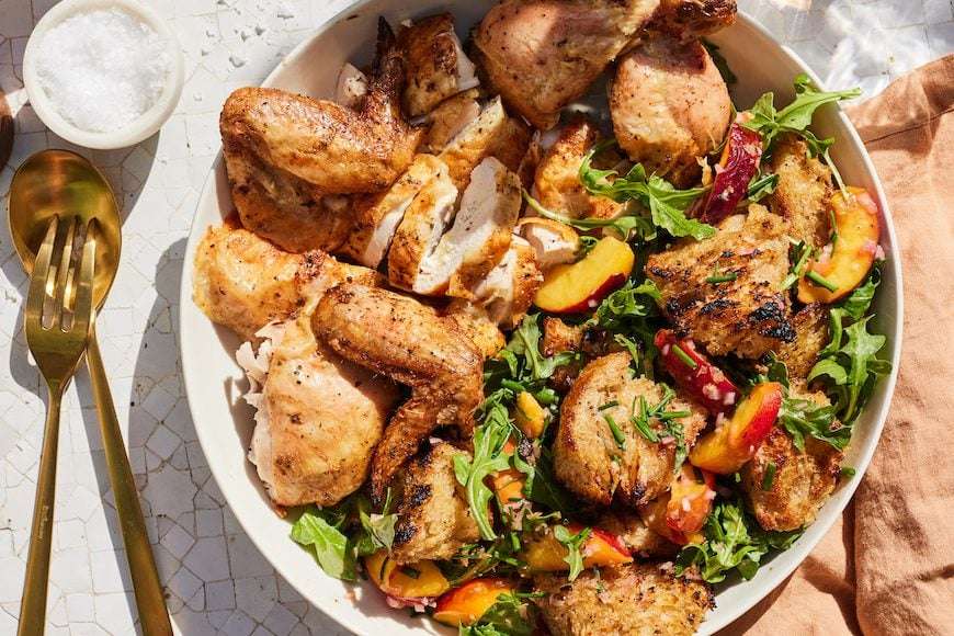 Roasted Chicken, summer peaches, a shallot-y vinaigrette, fresh greens… it’s fantastic! You need it before the temps cool down!