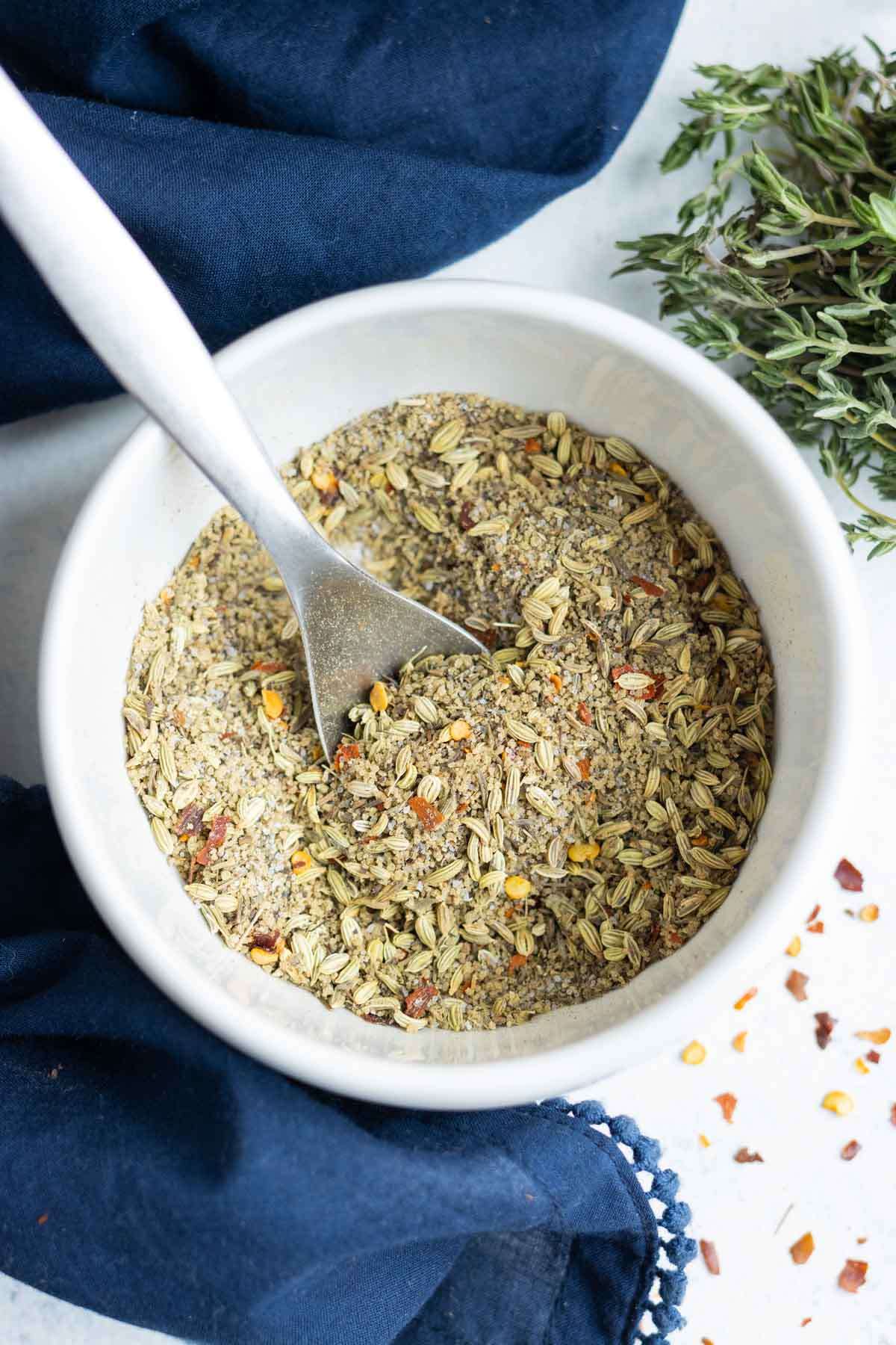 The perfect ratio of herbs, spices, and brown sugar combine to make the best breakfast sausage seasoning for patties and links! It works great with ground pork, turkey, chicken and even venison, too.