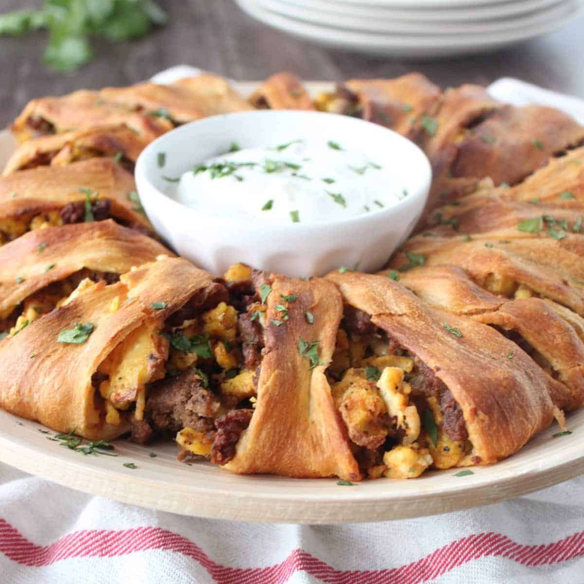 Eggs, sausage, cheese and hot sauce make the perfect filling for this breakfast taco ring that's so delicious, and easy to make!