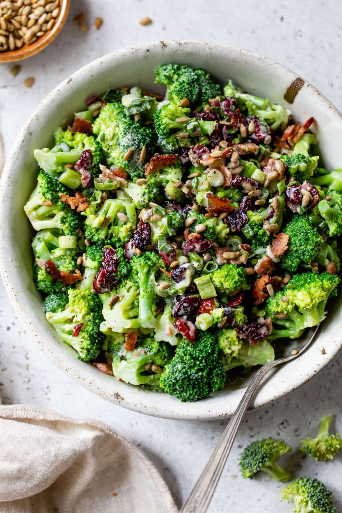 Broccoli bacon salad is a classic! With crisp broccoli, smoky bacon, sweet-tart cranberries in a creamy dressing, it's easy and always a hit.