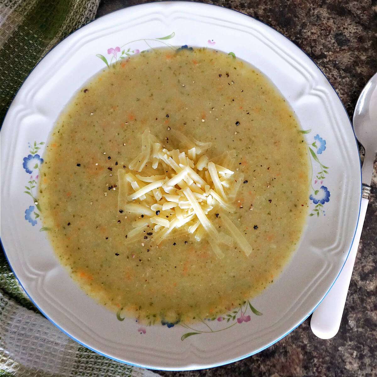 Broccoli Potato and Cheese Soup, a quick and easy vegetarian soup for the cold season. The cheddar cheese adds a touch of sharpness and compliments the soup so well. Serve it with plenty of extra cheese and black pepper, and you have a delicious soup for the whole family.