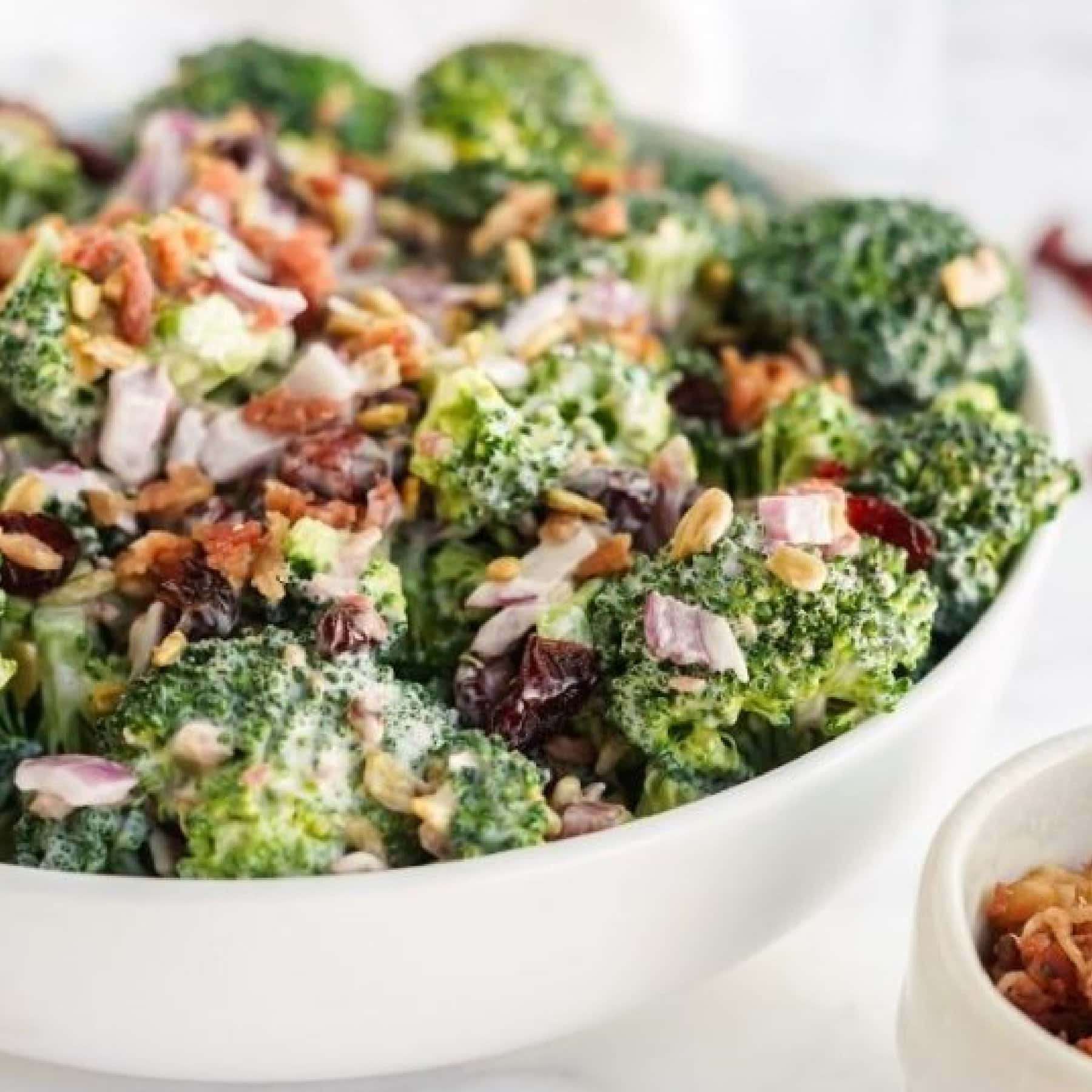 Do you love broccoli salad? This is a great dish to bring to potlucks, family gatherings, and cookouts. It’s delicious as a side dish or on its own. You can also make it ahead of time and store in the fridge until ready to serve.