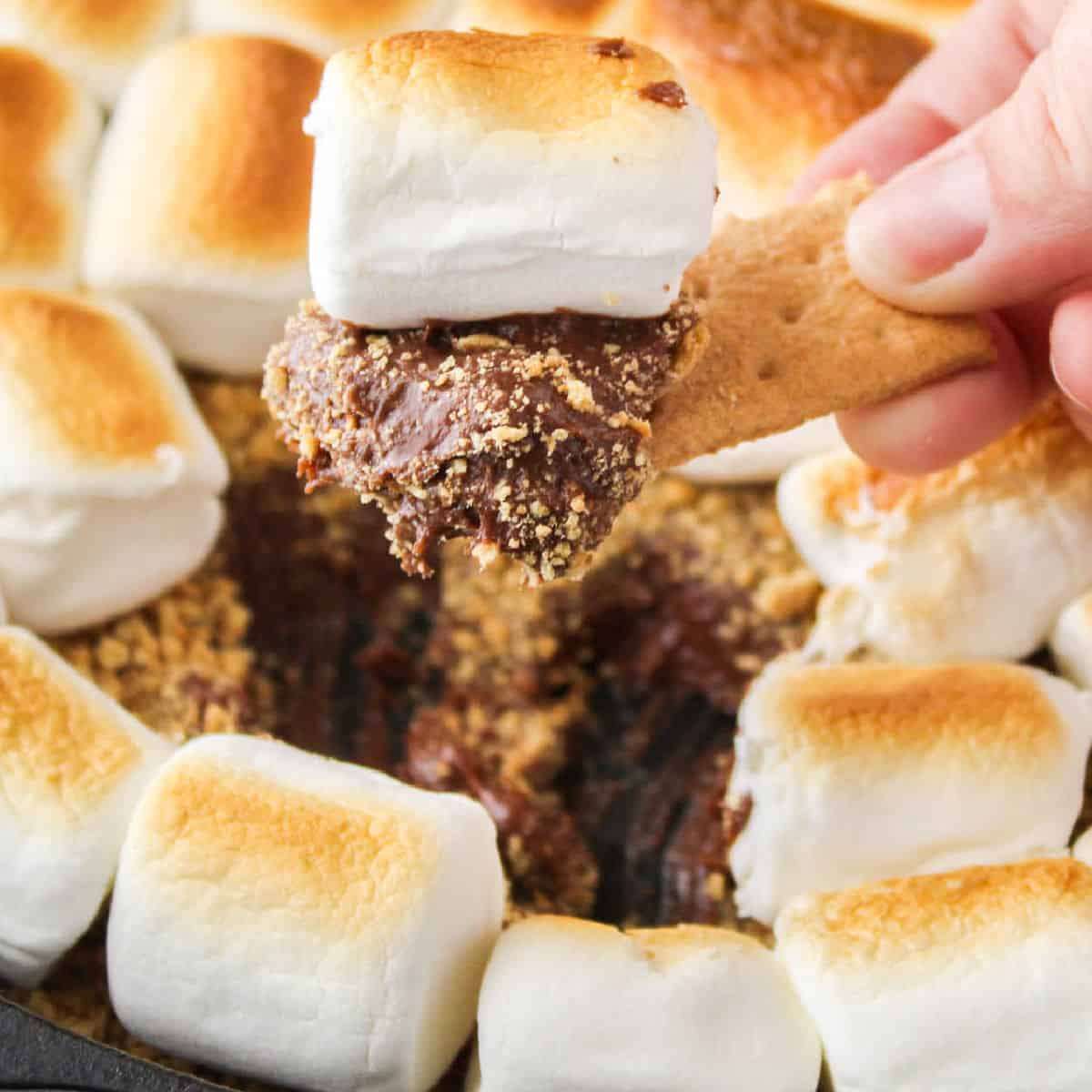 Delectably sinful Brownie Batter S'mores Dip gives you everything you love about this classic summer dessert in an easy-to-make party dip!