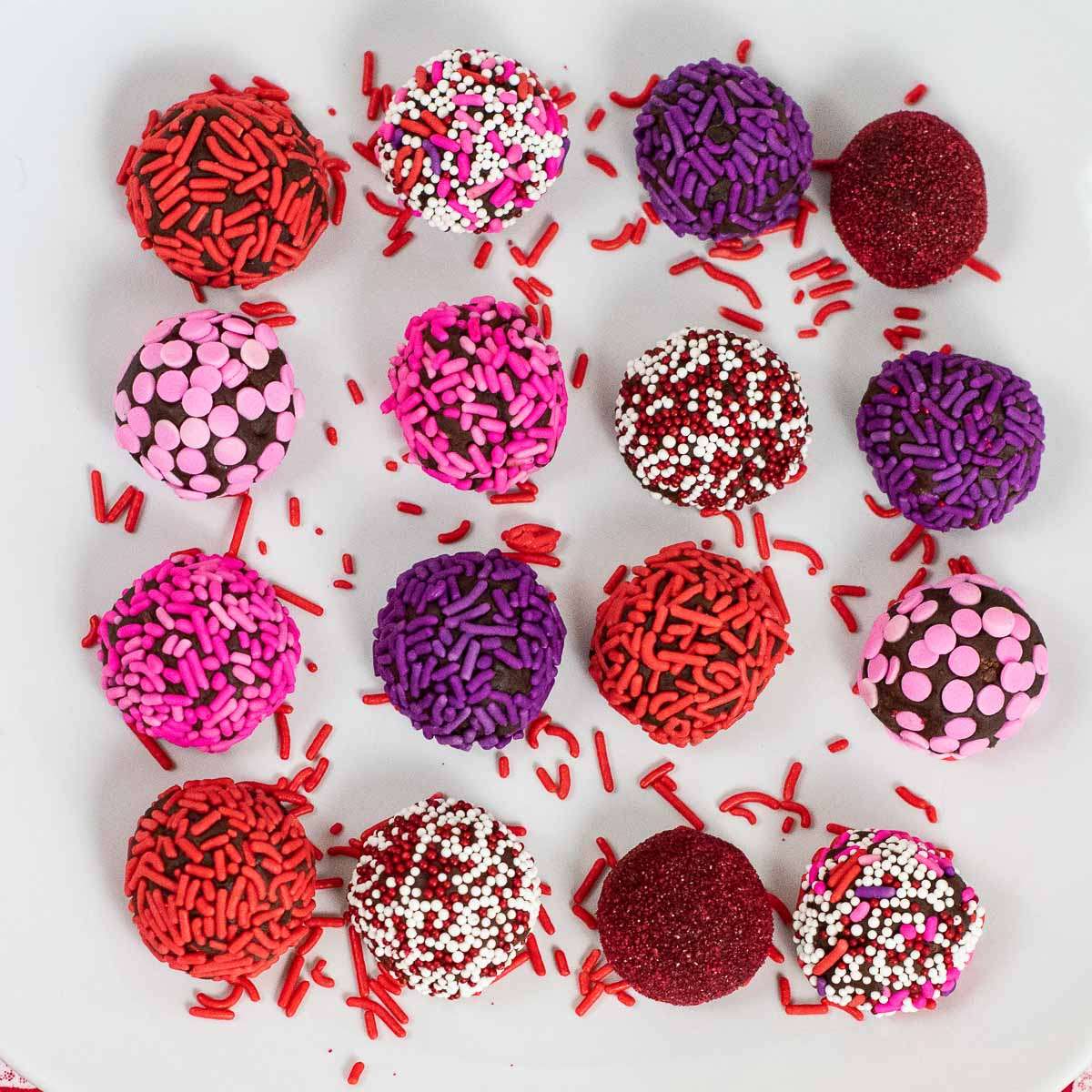 - Roll each truffle in sprinkles to coat and place on a baking sheet.