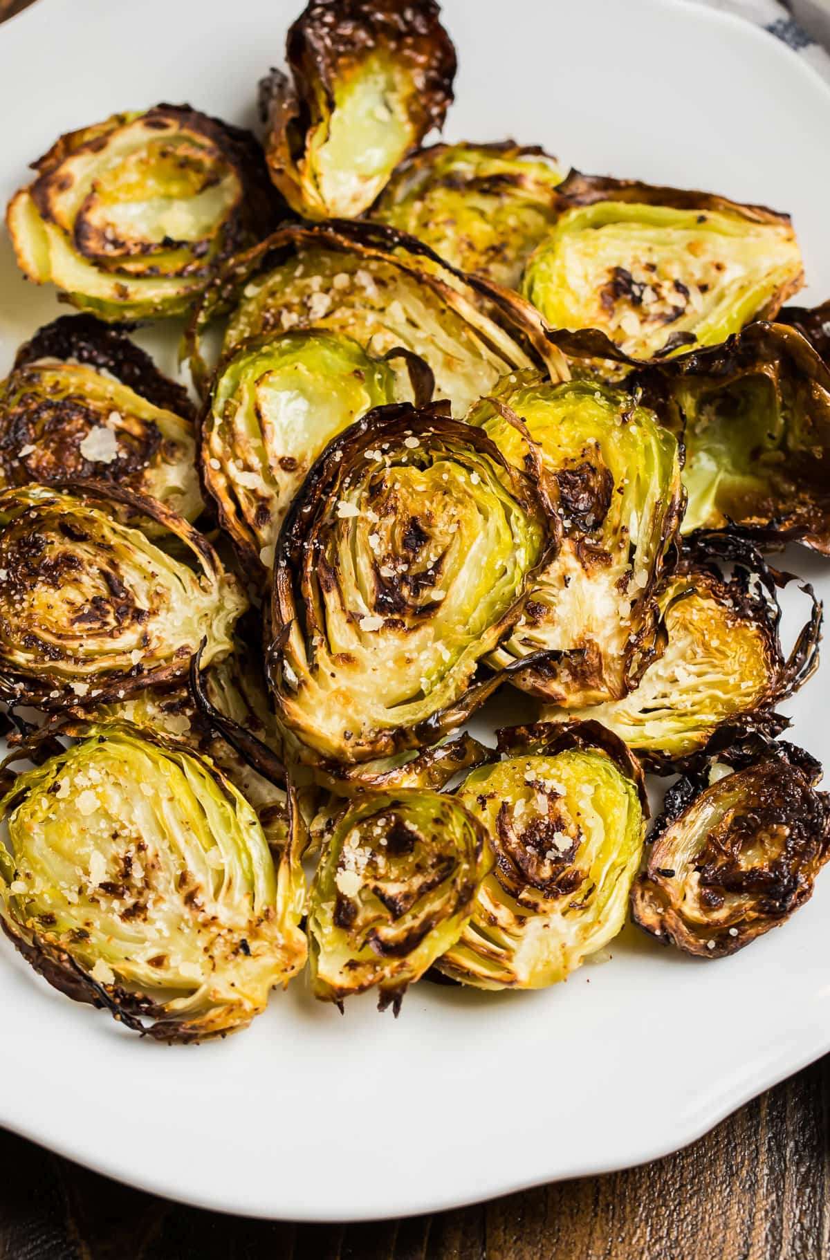 - Spread the Brussels sprouts into a single layer on the prepared baking sheet. Bake for 10 minutes, then remove the pan from the oven and with a spatula, flip the sprouts and move them around to promote even browning. Spread them back into a single layer and sprinkle them with Parmesan (if using), then return to the oven and continue baking until they are browned and crisp, about 5 additional minutes (if using two pans, switch their positions on the upper and lower racks). Watch the chips very carefully towards the end to ensure they do not burn. Devour immediately, right from the pan, or transfer to a plate and then go for it!