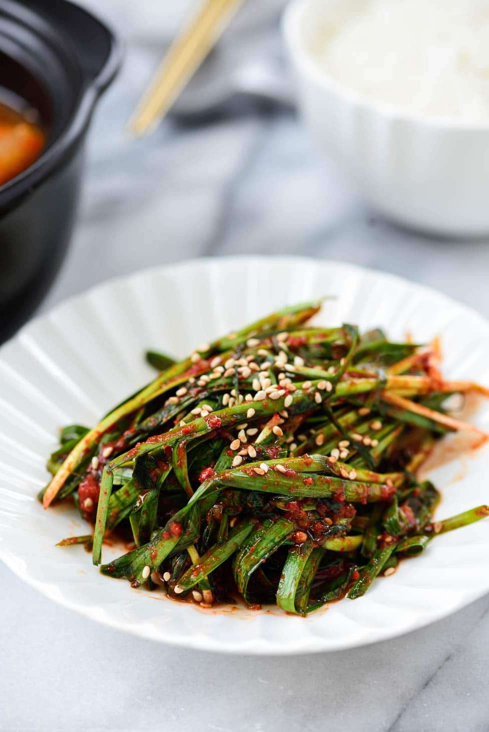 This kimchi made with garlic chives (buchu) is one of the easiest kimchi types to make! ·