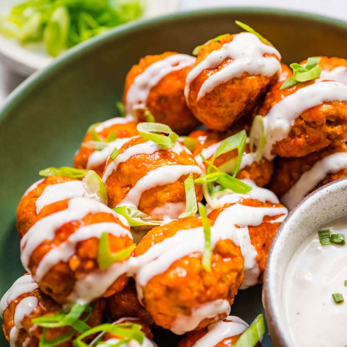 Buffalo Chicken Meatballs is an easy oven-baked meatball recipe with tasty hot sauce and tender chicken. Serve with blue cheese dressing and enjoy!