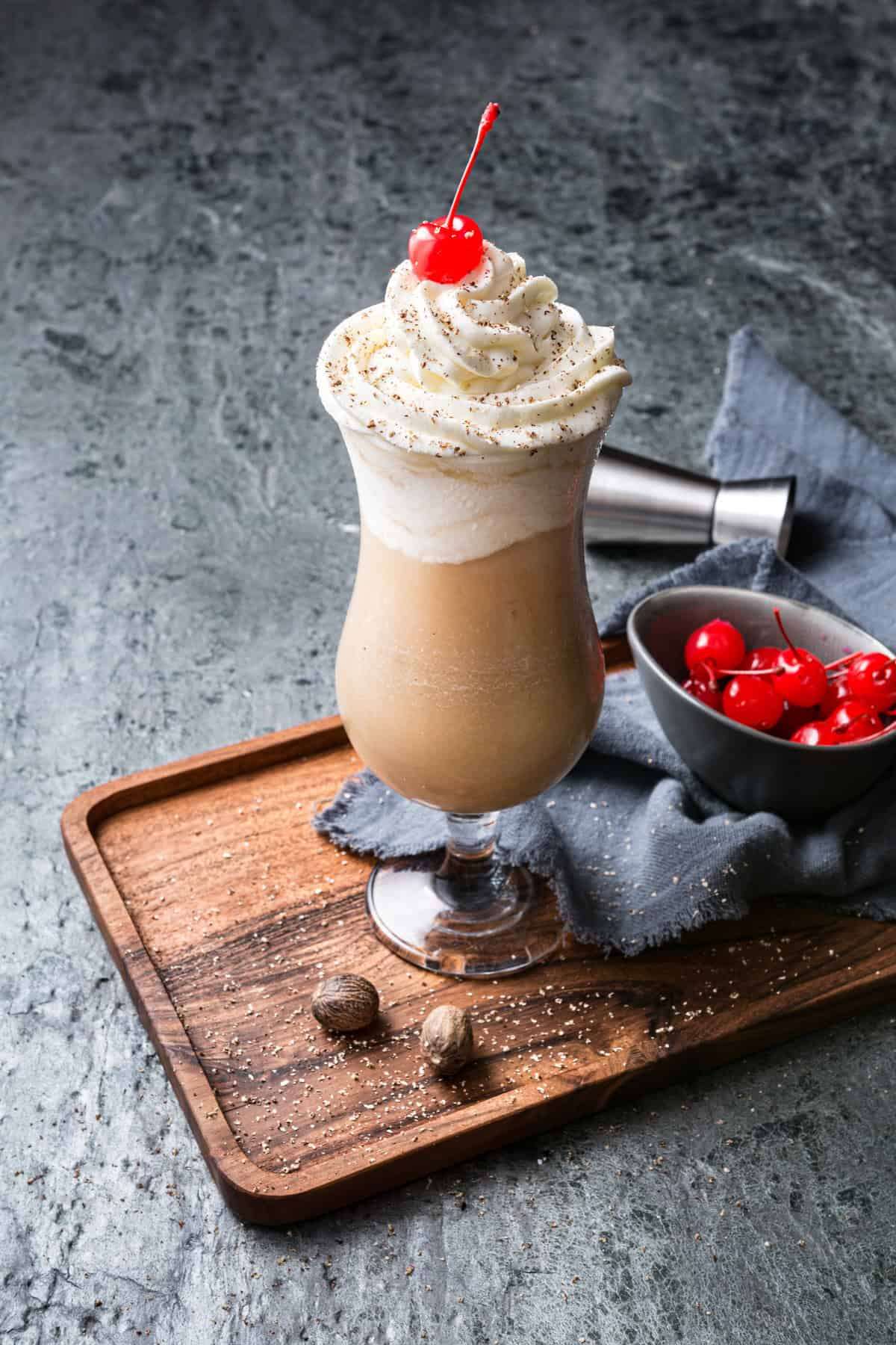 - Add whipped cream on top, garnish with a cherry or a sprinkle of nutmeg. Enjoy!