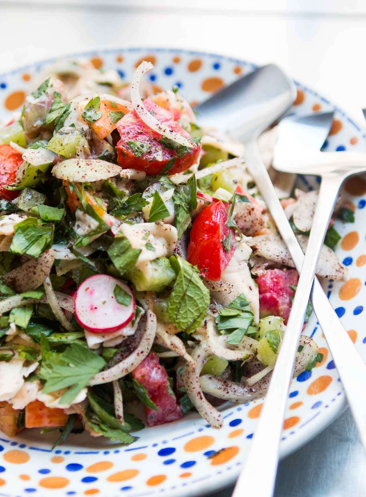 - Mix everything together then transfer to a serving platter. Strew the remaining sumac onions over the salad, drizzle with a little extra olive oil, and sprinkle with the remaining 1/2 teaspoon of sumac. Serve immediately.