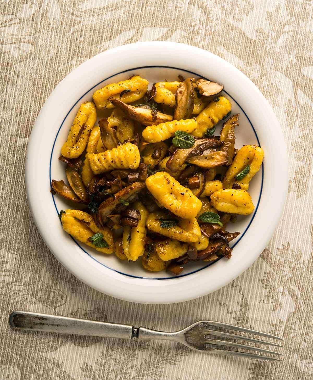 - Finish the dish. Add the rest of the butter to the pan you cooked the mushrooms in and put it over medium-high heat. Add the gnocchi, mushrooms and sage and toss to combine. Let them cook now for 1 minute undisturbed, so you get a little browning on the gnocchi. Repeat this one more time, then serve with black pepper.