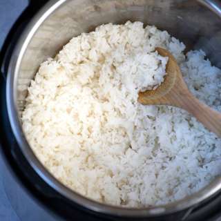 - Close Instant Pot lid with pressure valve to sealing. Press the ‘Rice’ button. Allow Natural Pressure Release. Open Instant Pot and pour lemon juice. Garnish with cilantro and coconut. Enjoy hot!