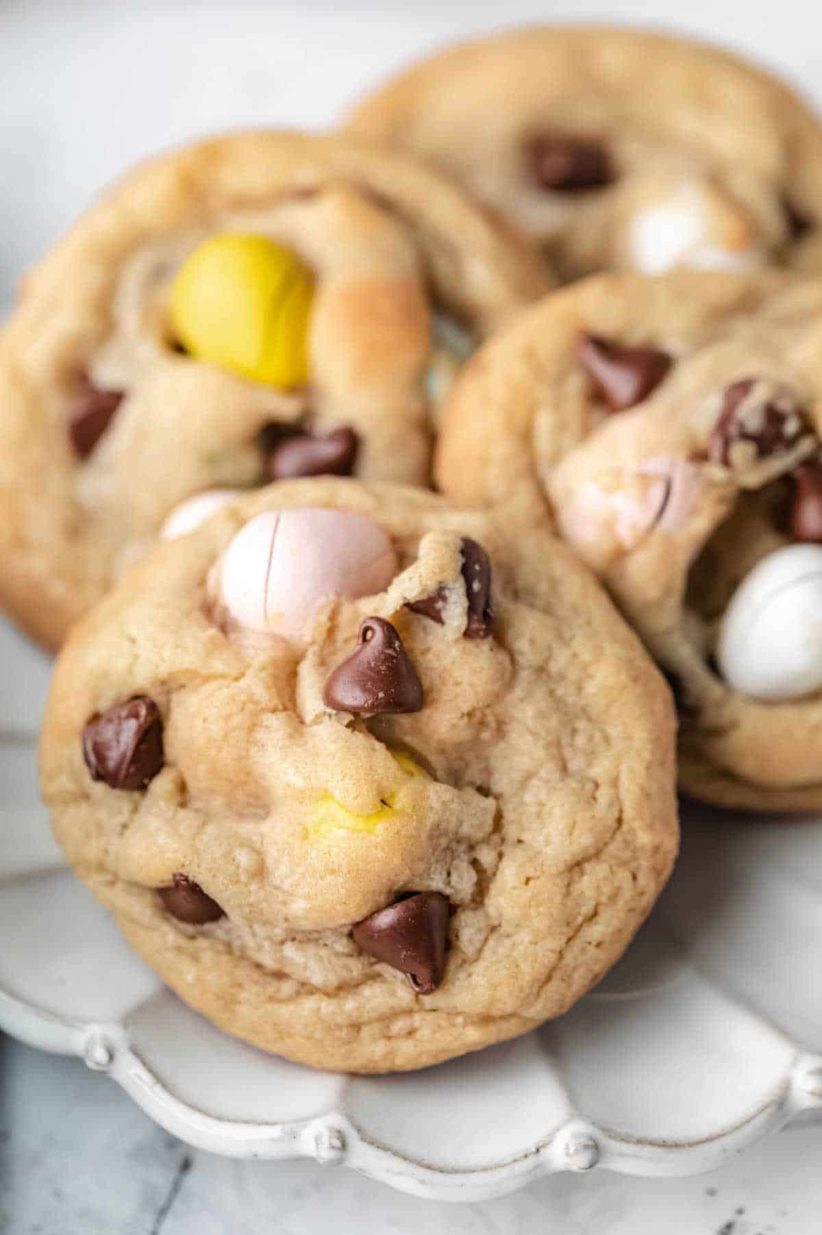 Easy Cadbury Egg cookie recipe! This simple recipe makes soft chocolate chip Cadbury Egg cookies.