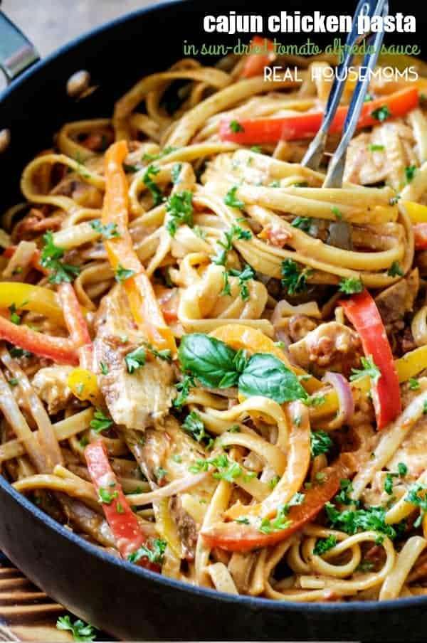 Creamy, CAJUN CHICKEN PASTA IN SUN-DRIED TOMATO ALFREDO SAUCE is melt in your mouth delicious and 1,000x better than any restaurant at a fraction of the cost and calories!
