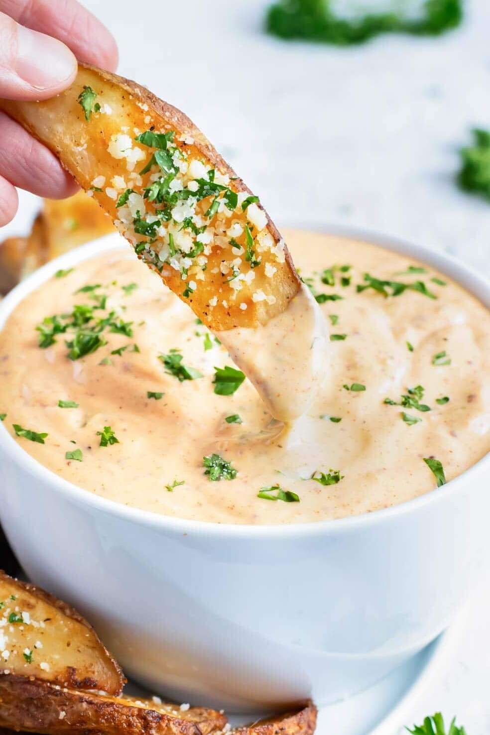- Serve remoulade sauce with baked potato wedges, over fried fish, with crab cakes or chicken and enjoy!