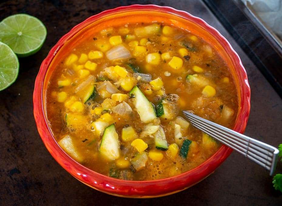 It's easy to turn Calabacitas into a lip-smacking soup! Try to use some stock that you trust as it can make a huge difference -- I used homemade veggie stock for this batch.