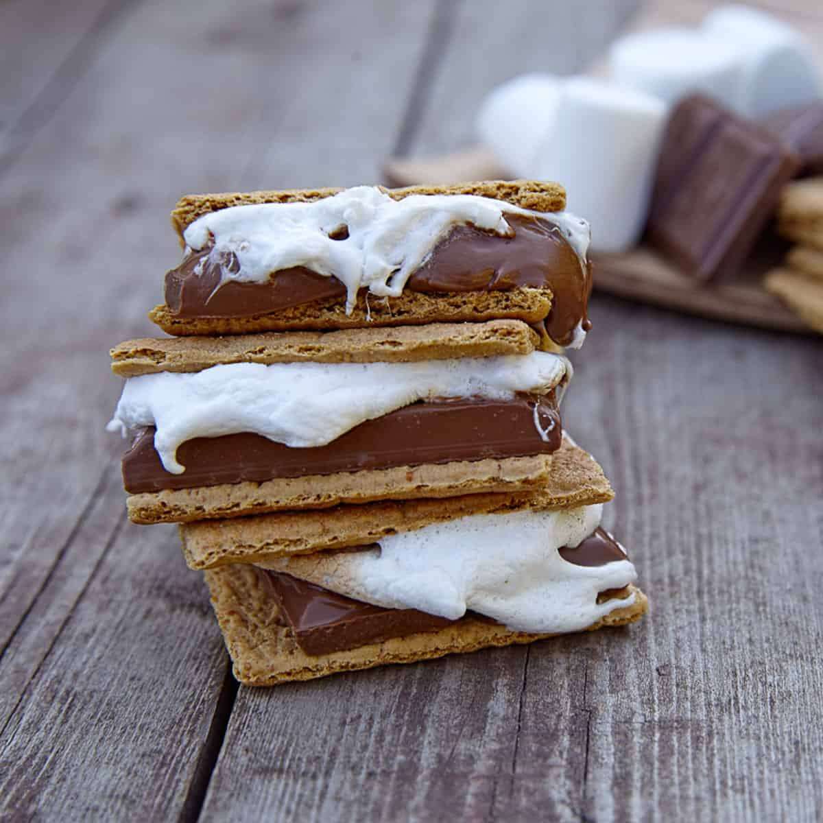 - Roast the marshmallows over indirect heat near the campfire until marshmallow is golden.Add marshmallow to graham cracker, and close the s’more sandwich. Eat immediately.