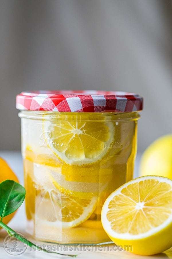 - Place sliced lemons into jar (about 1/2 lemon at a time). Cover lemon slices with at least 3 Tbsp sugar.