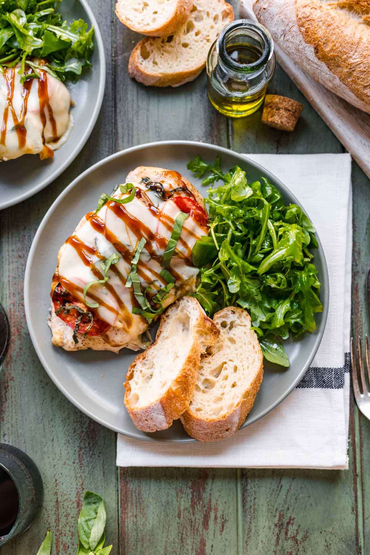 Baked Caprese Chicken is an easy family dinner with fresh tomatoes, basil leaves, mozzarella, and fruity balsamic glaze. Try it today!