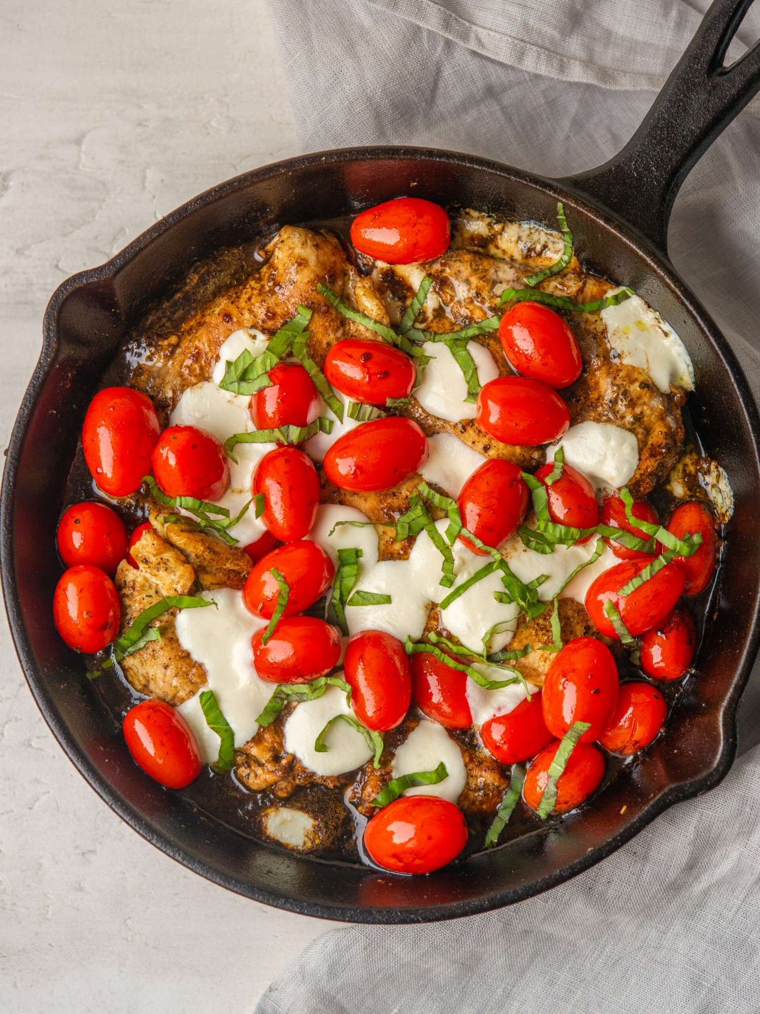 - Turn the heat off the stove and add the chicken back to the pan and toss to coat in the balsamic sauce