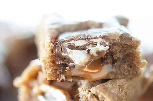 This caramel apple blondies recipe is perfectly soft and chewy and loaded with Caramel Apple Milky Ways!