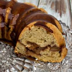 Caramel Apple Cake - delicious fall dessert of cake stuffed with apples and topped off with caramel drizzle.