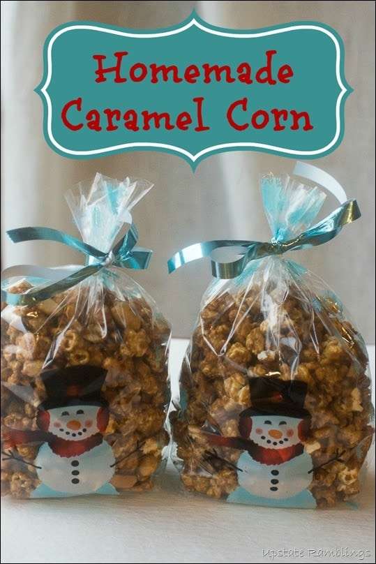 - Pour the caramel over the popcorn in the bowl. Stir in the peanuts and mix thoroughly.