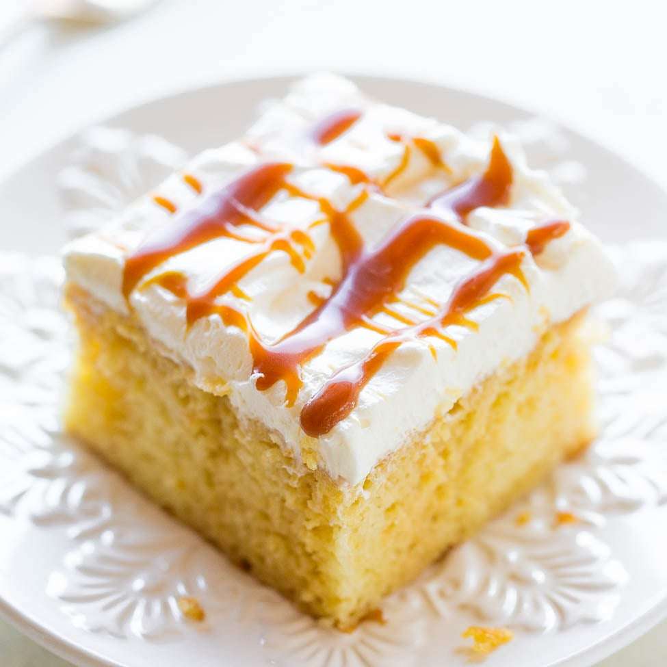 🍰 🎉 💛 A creamy caramel mixture soaks into soft yellow cake before being topped with whipped cream and more CARAMEL! An EASY cake that's a guaranteed WINNER especially with caramel lovers!