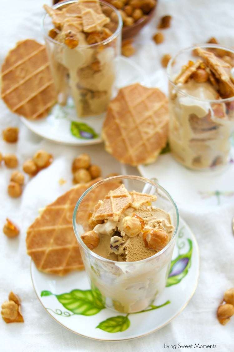 This delicious Affogato recipe is made with caramelized hazelnuts, hazelnut ice cream, and instant coffee for a delicious no bake dessert idea.