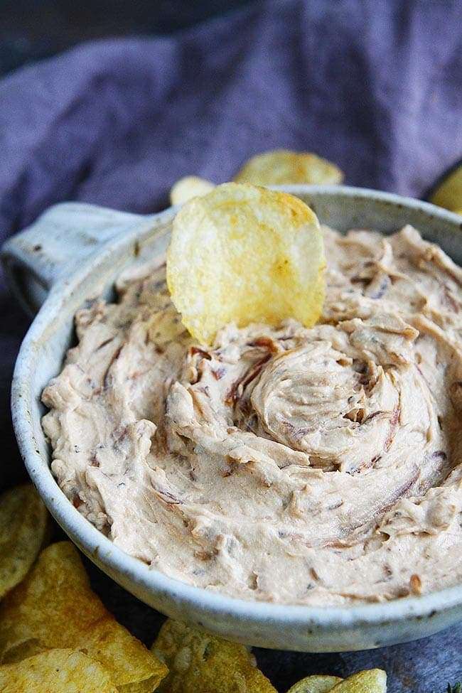 This easy caramelized onion dip is the perfect party food! Serve with chips for the perfect appetizer or snack.