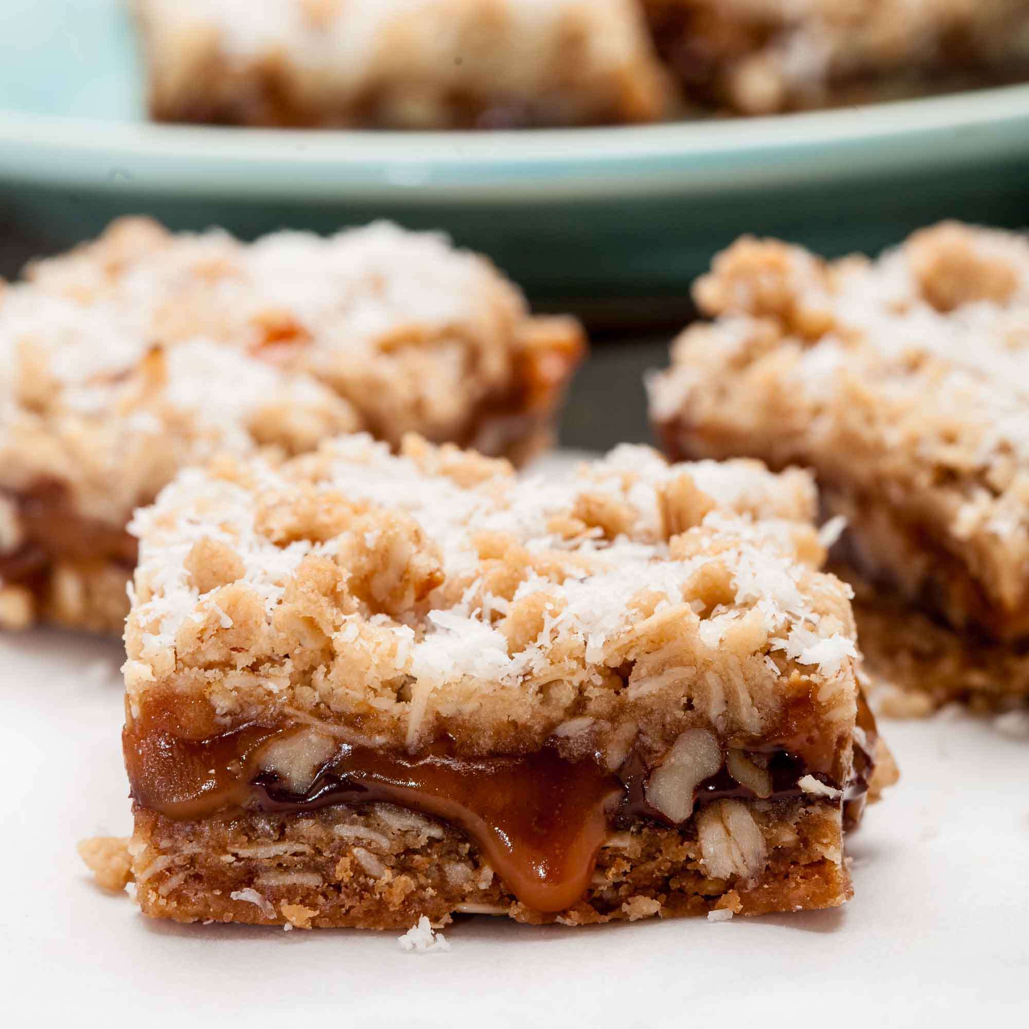 These Carmelita Bars are irresistible. They're loaded with tons of oats, gooey with caramel, and plenty of chocolate. They're one of the best cookie bars to share at potlucks. Be sure to give dessert enough time to cool and chill before cutting.