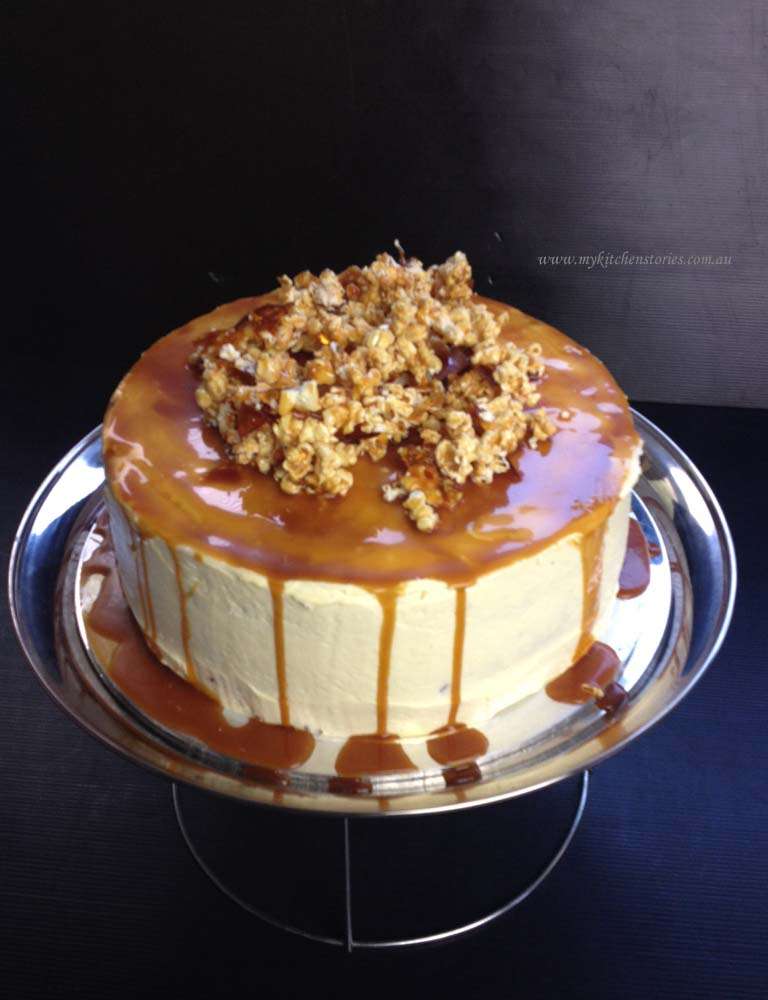 - Break the popcorn up. Put the popcorn onto the cake just before serving. It can be kept in an airtight container