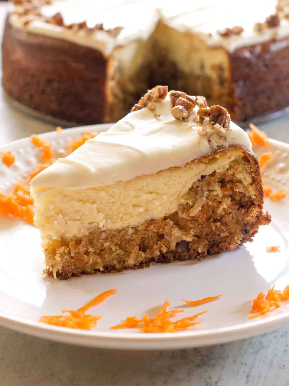 This Carrot Cake Cheesecake recipe has a layer of carrot cake topped with a layer of creamy cheesecake for the ultimate dessert. This is delicious dessert is a copycat Cheesecake Factory recipe. One of our most popular desserts for Easter.