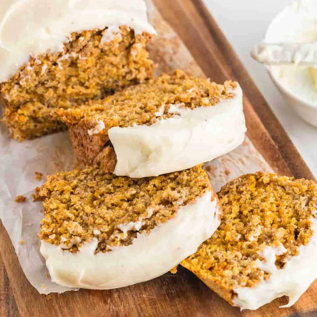My carrot cake loaf combines soft, spiced cake and creamy, tangy frosting. Easy to whip up, slice, and enjoy—especially with coffee!