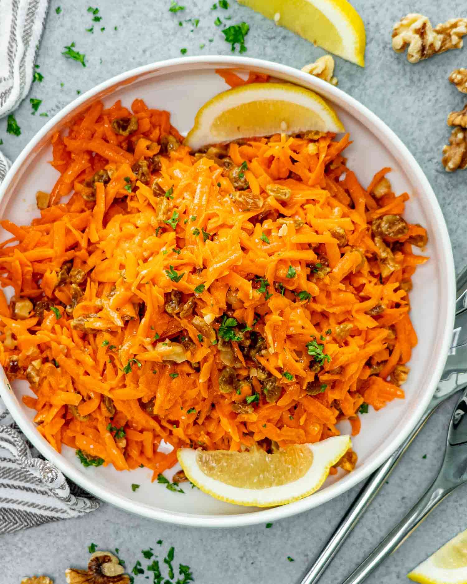 Carrot Raisin Salad is a delightful mix of shredded carrots and plump raisins, dressed in a creamy honey-lemon blend that perfectly balances sweet and tangy flavors. Topped with crunchy walnuts and fresh parsley, this salad is an easy, refreshing side that complements any meal beautifully.