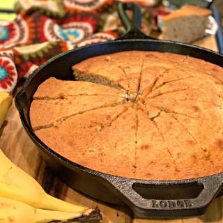 - Place cast iron skillet into oven or onto smoker and cook for about 30-35 minutes, or until golden brown on top.