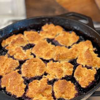 Using fresh cherries, this Cast Iron Cherry Cobbler is packed with flavor and makes quite a tasty dessert! Serve with a scoop of ice-cream and you have the perfect sweet treat!