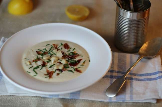 - Bring the mixture to a boil, turn down and simmer till tender ( approx 20min). Add the lemon juice and puree with a stick blender ( I used my Vitamix for a very smooth finish).