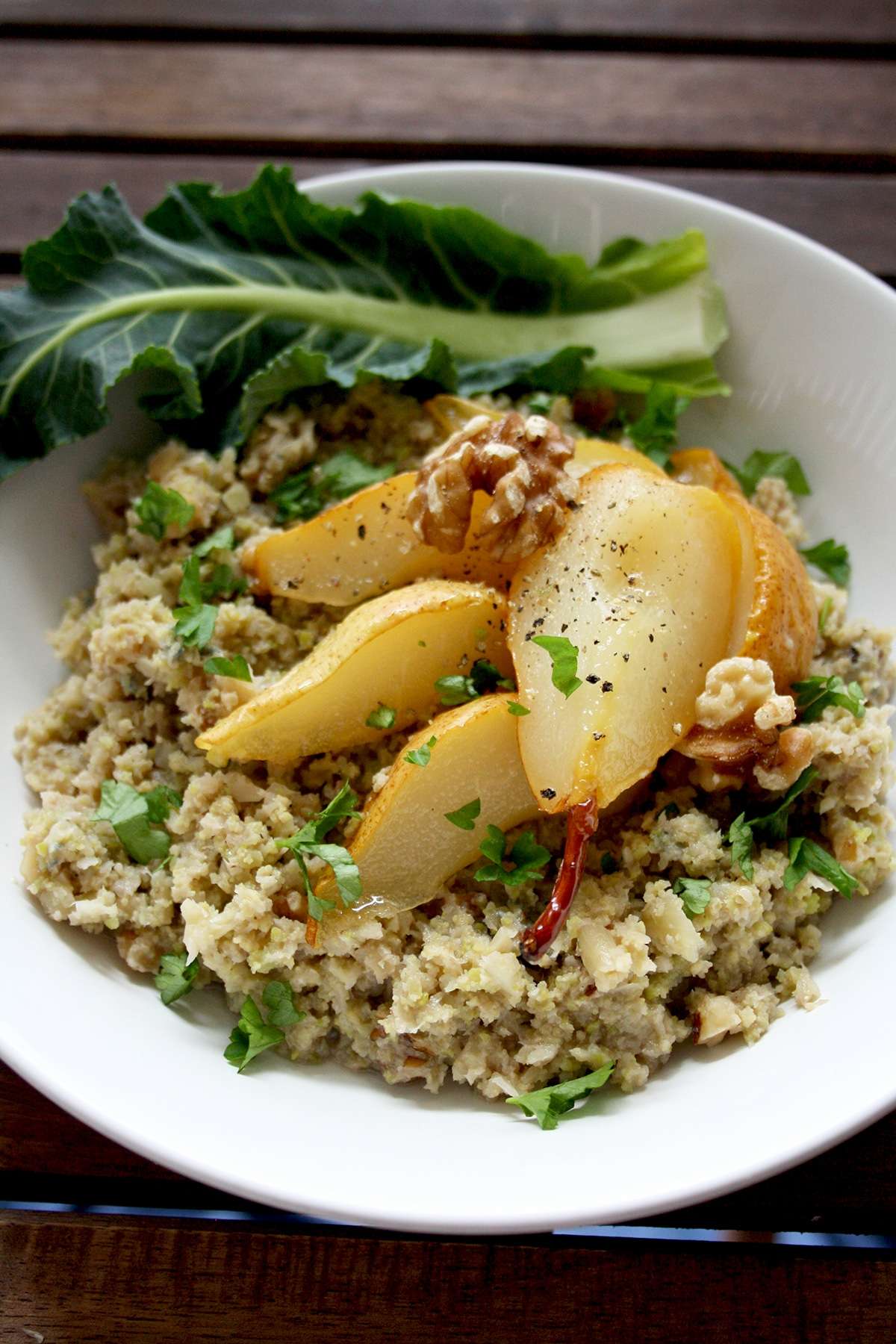Cauliflower Risotto with Caramelized Pears, Blue Cheese and Walnuts