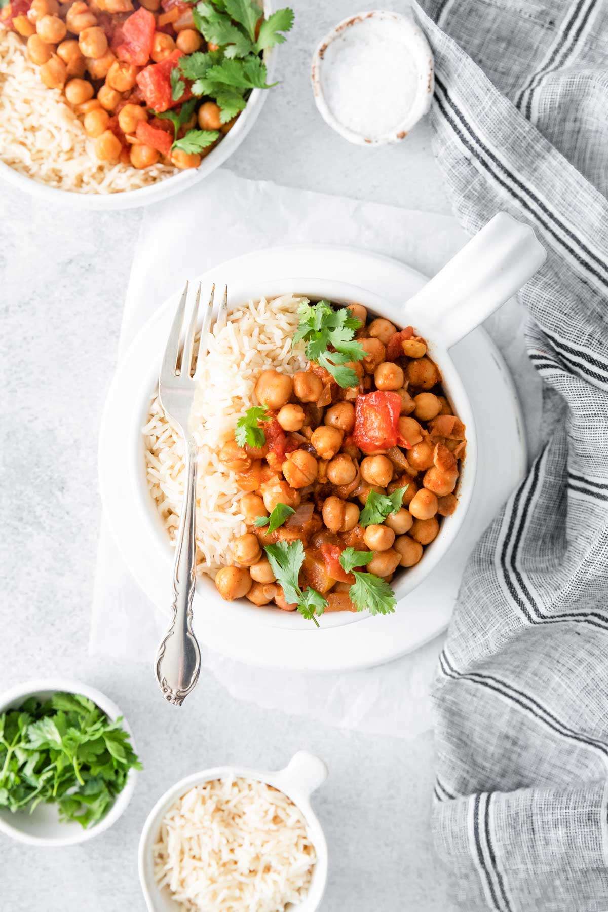 - When done, perform a quick pressure release. Serve the chana masala with rice and fresh cilantro.