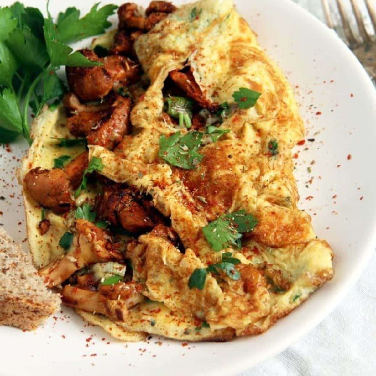 - Serve chanterelle omelet: Cut in two pieces, sprinkle with parsley or chives, and serve with bread and green salad.some parsley or chives