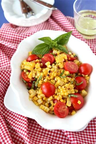Charred Corn Salad Recipe with Cherry Tomatoes & Basil