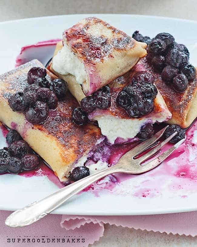 Blintzes thin, crêpe-style pancakes filled with cheese and served dusted with icing sugar. Add an easy blueberry sauce and prepare to swoon!