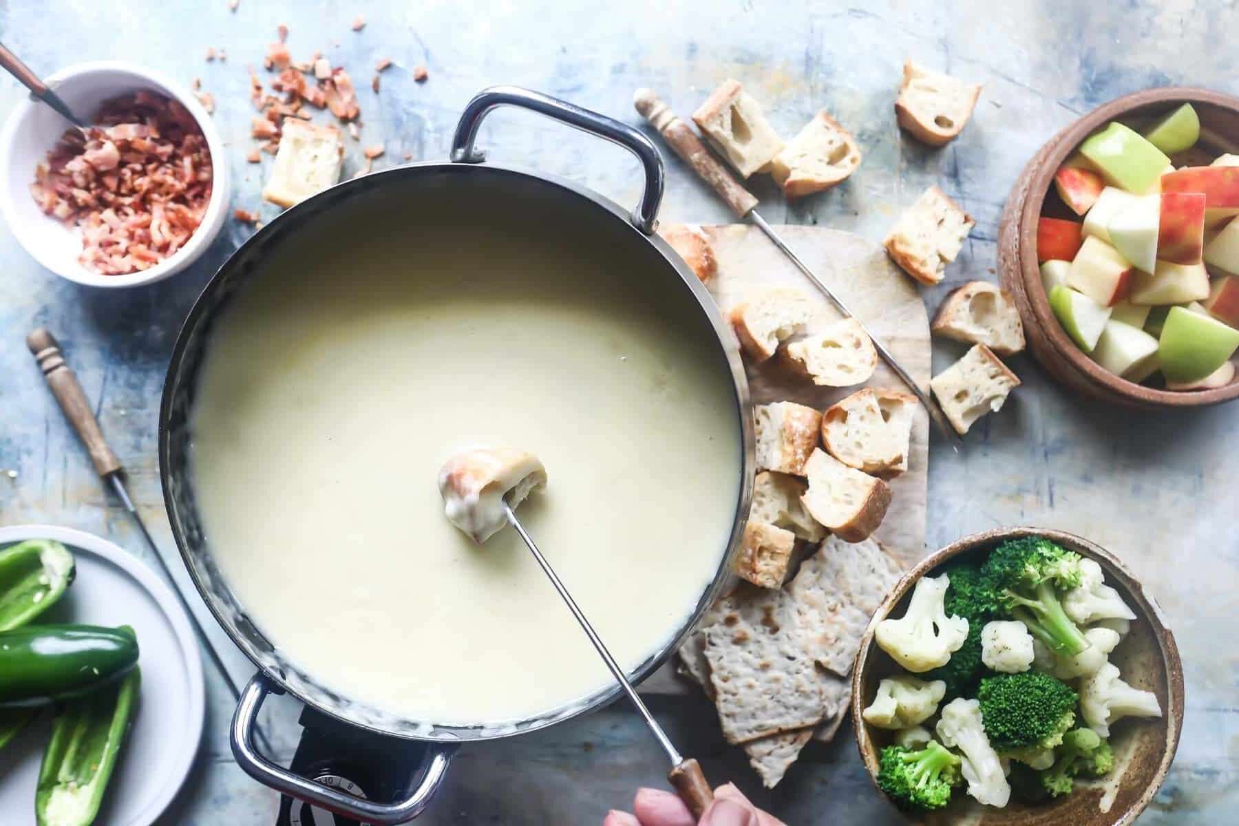 - Fondue pot: I have and love this Cuisinart electric fondue pot. It's easy to use, a breeze to clean, and it works really well! It's the same one you see in the photos, and it comes with 8 skewers. The recipe is written for a stove-top version of fondue so anyone can make it.