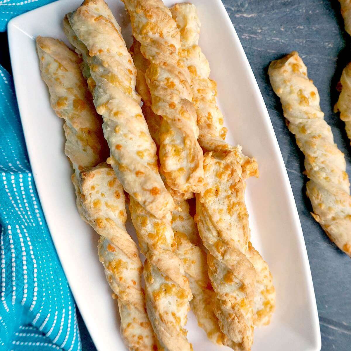 Homemade Cheese Twists Recipe, or Cheese Straws, made from scratch with a few simple ingredients, deliciously golden and divinely cheesy tasting. The best party food for absolutely every occasion. No need to buy the ready-made ones, these cheese twists are the best! I used cheddar cheese and parmesan cheese for a distinct sharp kick, and they were gone so quickly.