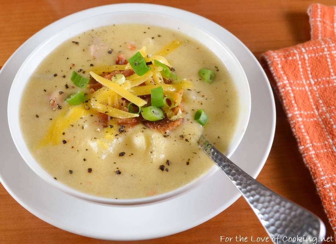- Ladle into bowls then top with bacon bits, green onion, and a little more shredded cheese.