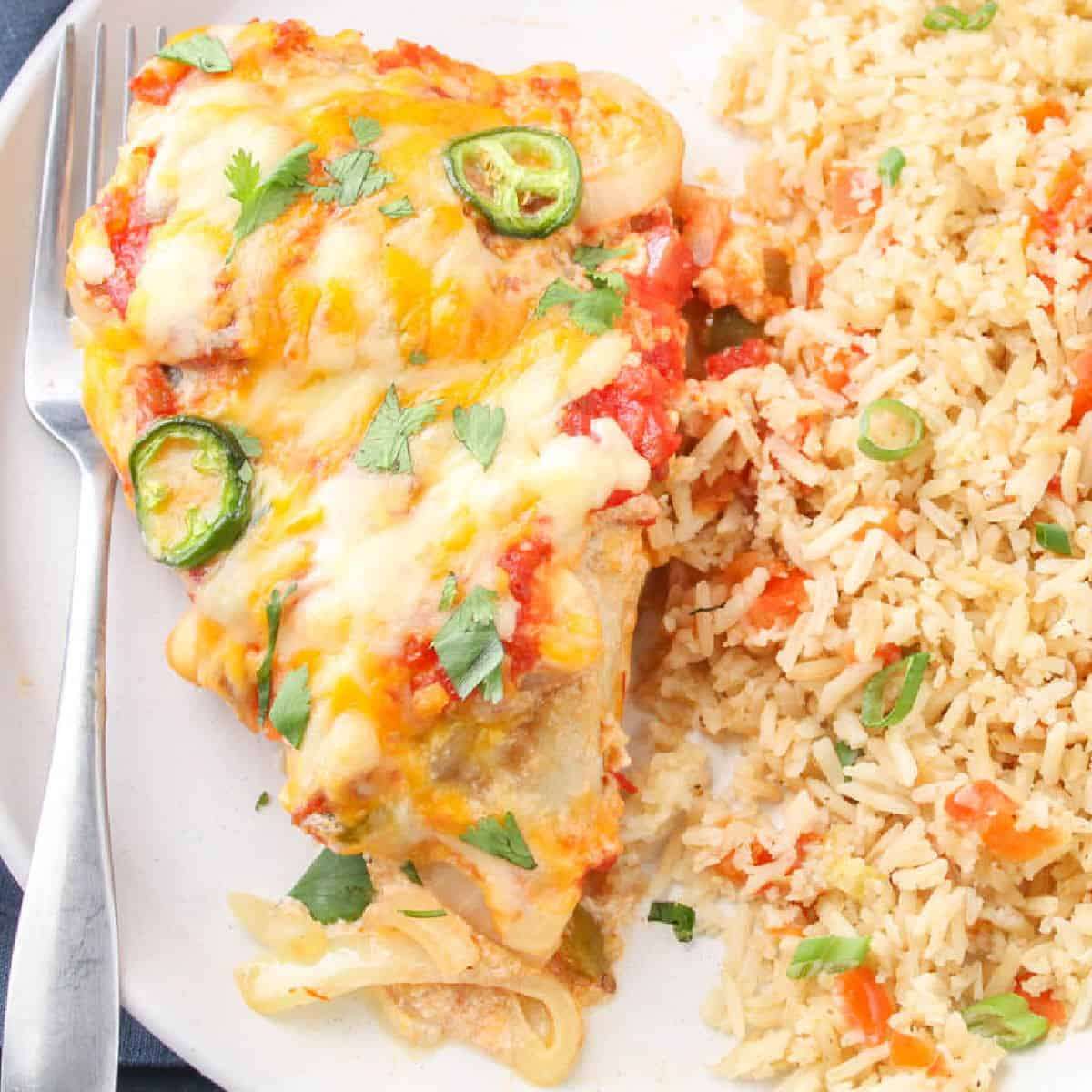 Simple and delicious Cheesy Salsa Chicken is packed with flavor and ready in just 30 minutes. It is the perfect weeknight dinner recipe!