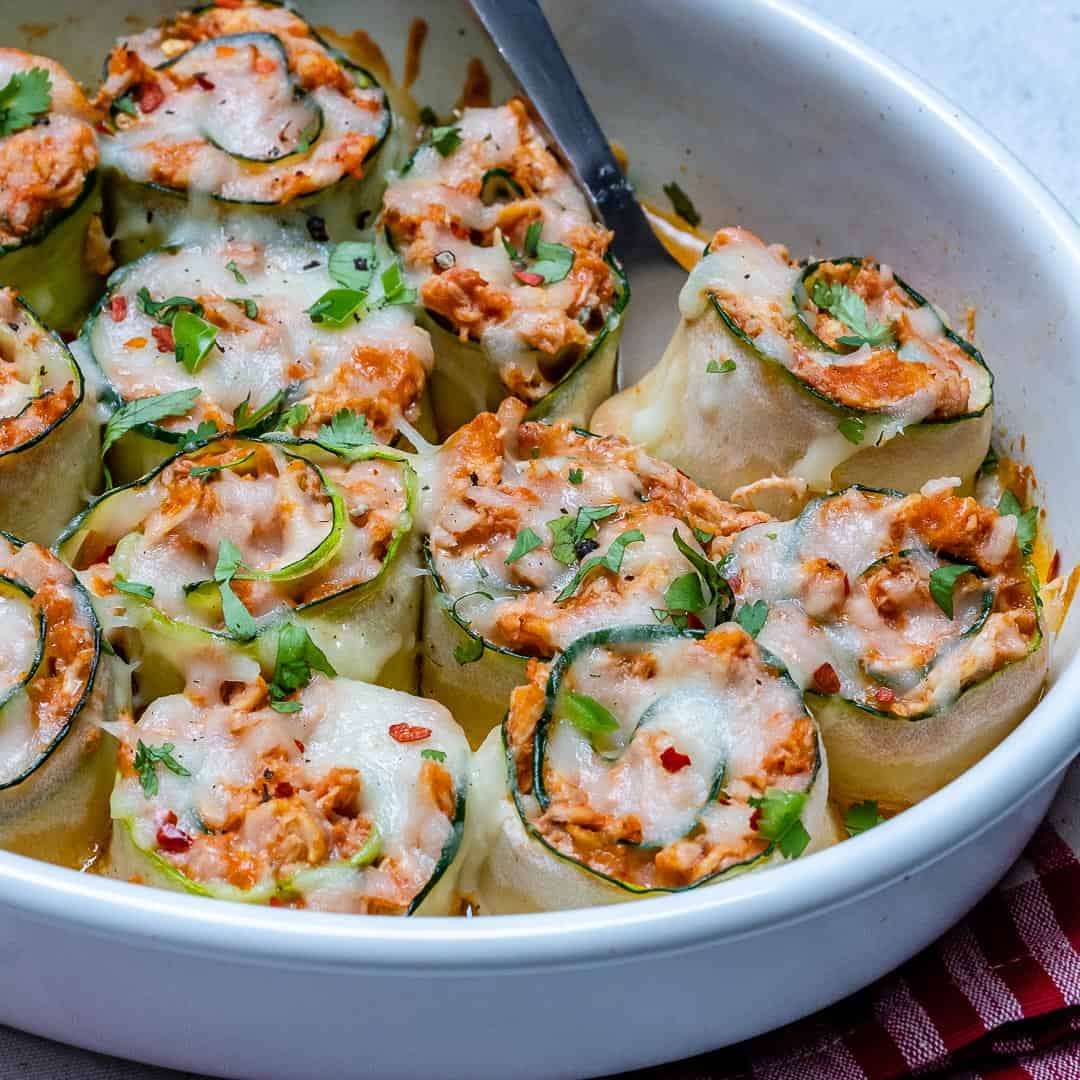 Easy to make and tasty enchilada recipe made with chicken and zucchini for a low carb option.