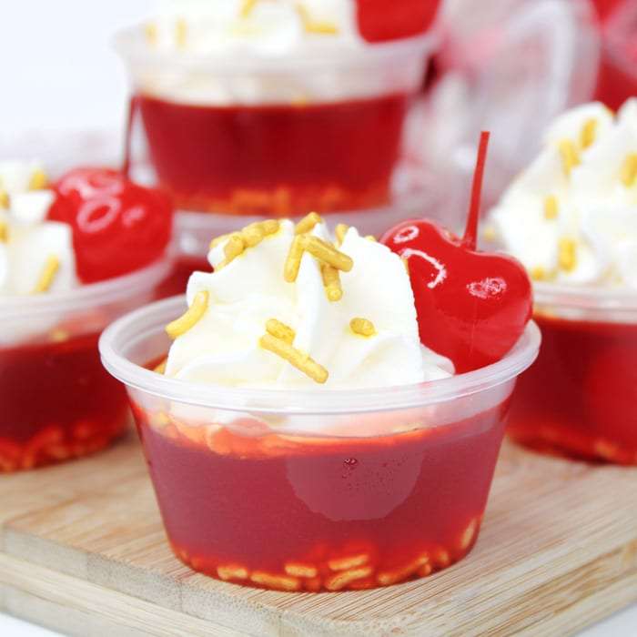 Perfect for 4th of July, Cherry Jell-O with cherry liqueur and whipped cream vodka make the best Cherry Bomb Jello Shots!