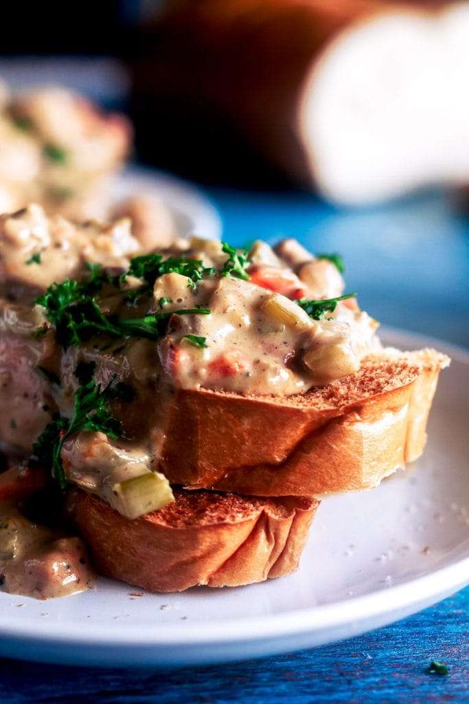 Cozy, comforting Chicken a la King is one of my favorite weeknight dinners! Juicy chicken and tender veggies with creamy, flavorful gravy served over toast, biscuits, or pasta is a winner with the whole family, even picky kids.